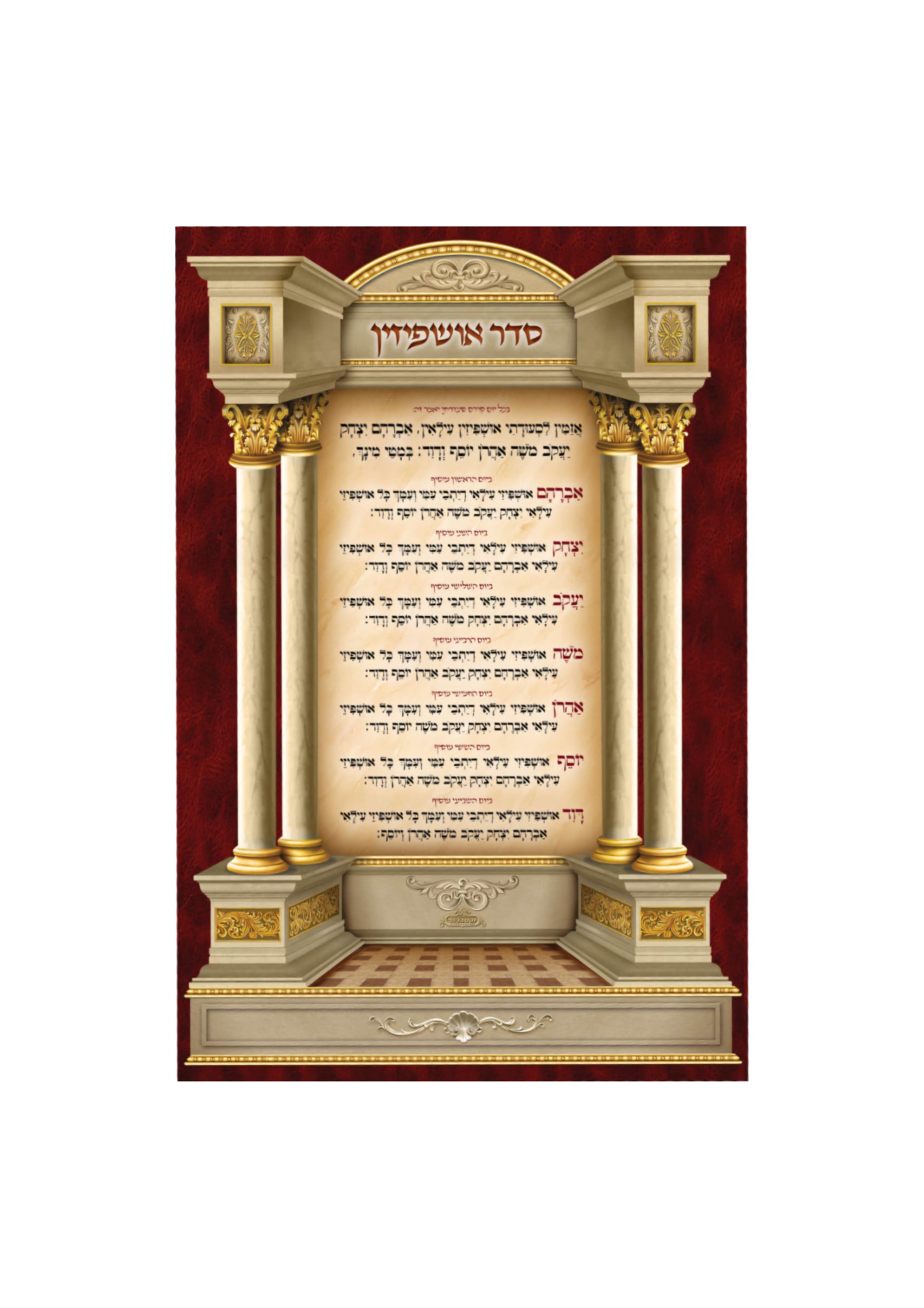 רבנים: הרב עובדיה, הרב חיים קנייבסקי, מרן החפץ חיים, הבבא סאלי, ברכת האושפיזים. גודל הבד: גובה 2.4 רוחב 1.6 מטר
