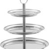 סטנד נירוסטה 3 קומות, צלחת תחתונה 30 ס"מ, צלחת אמצעית 25 ס"מ, צלחת עליונה 20 ס"מ, מתאים להגשת קינוחים/ עוגיות/ פירות